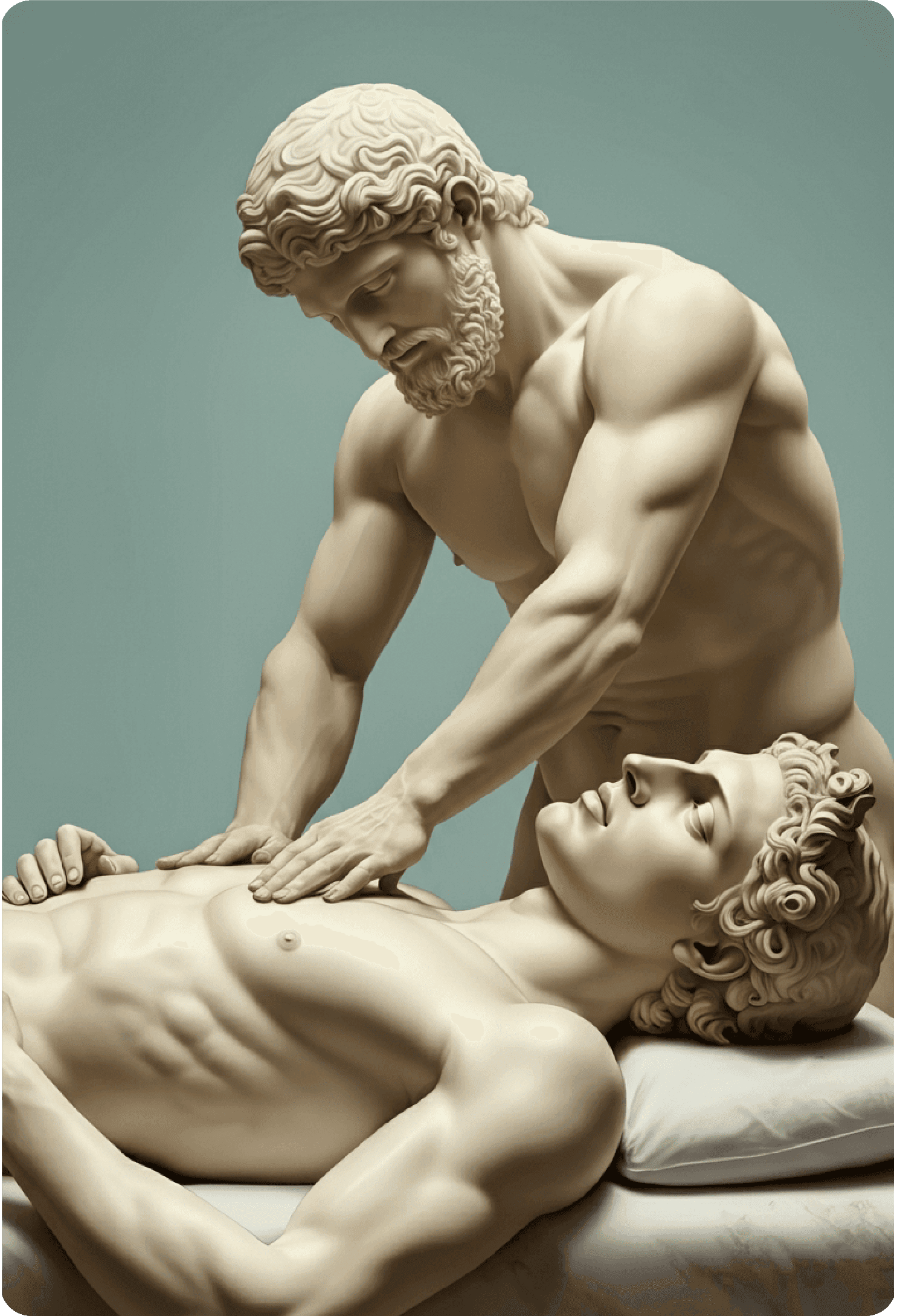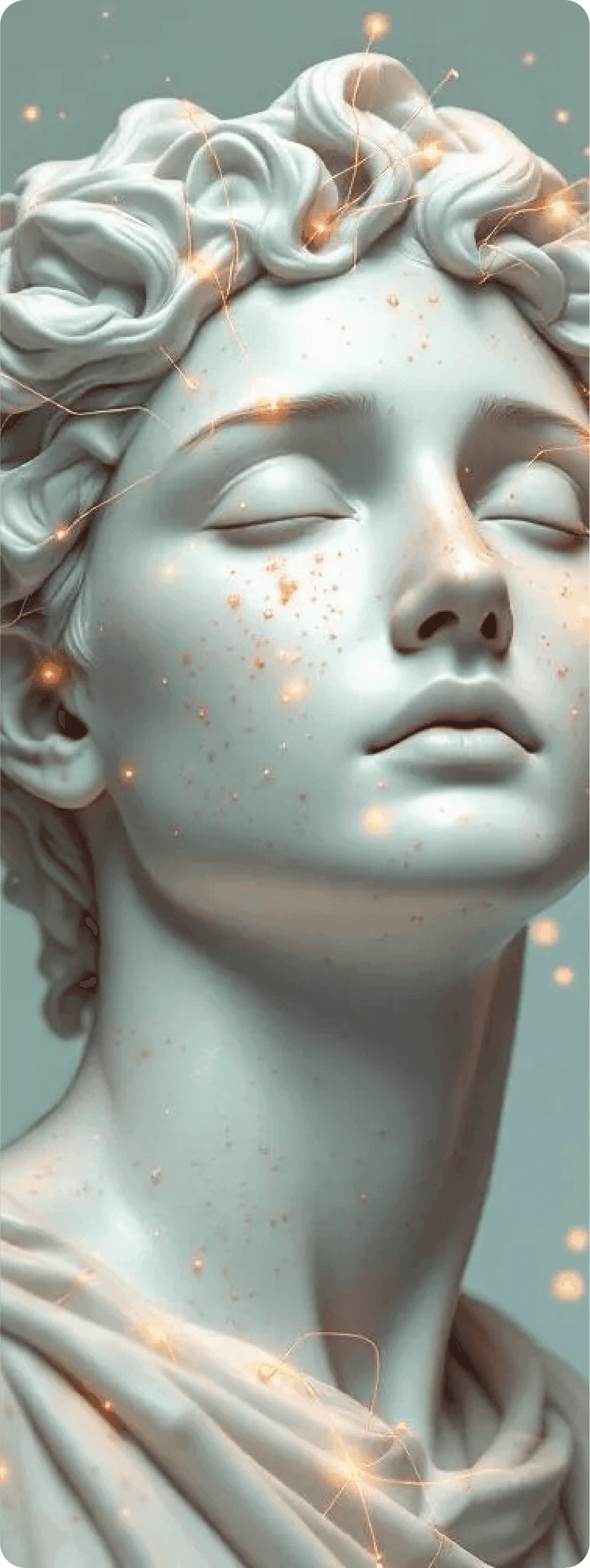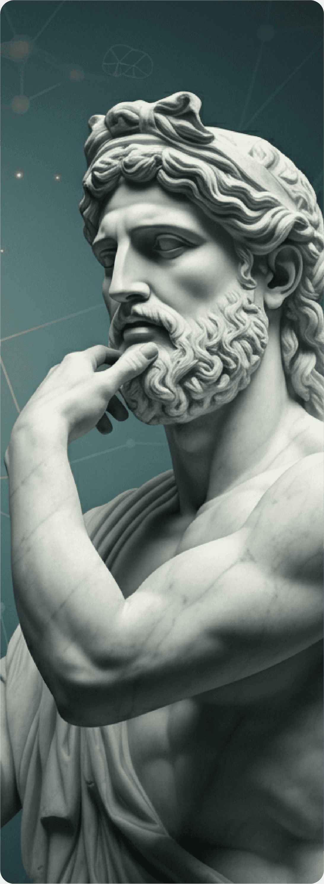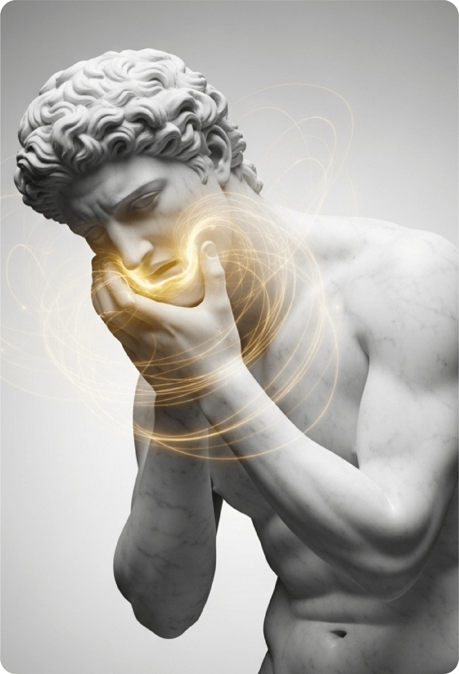 Classical sculptural imagery represents timeless wisdom, balance, and strength—reframed for a contemporary wellness narrative.