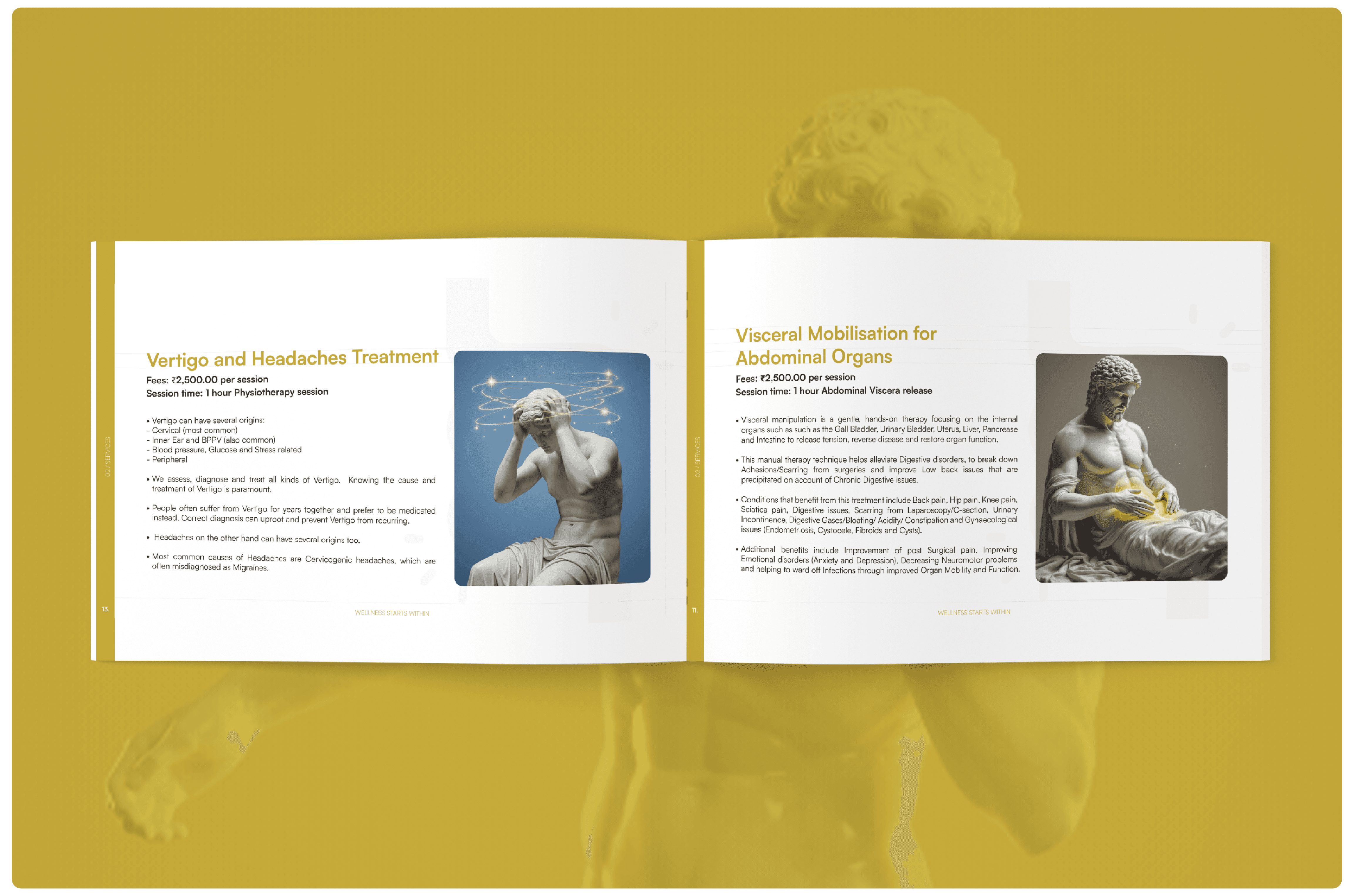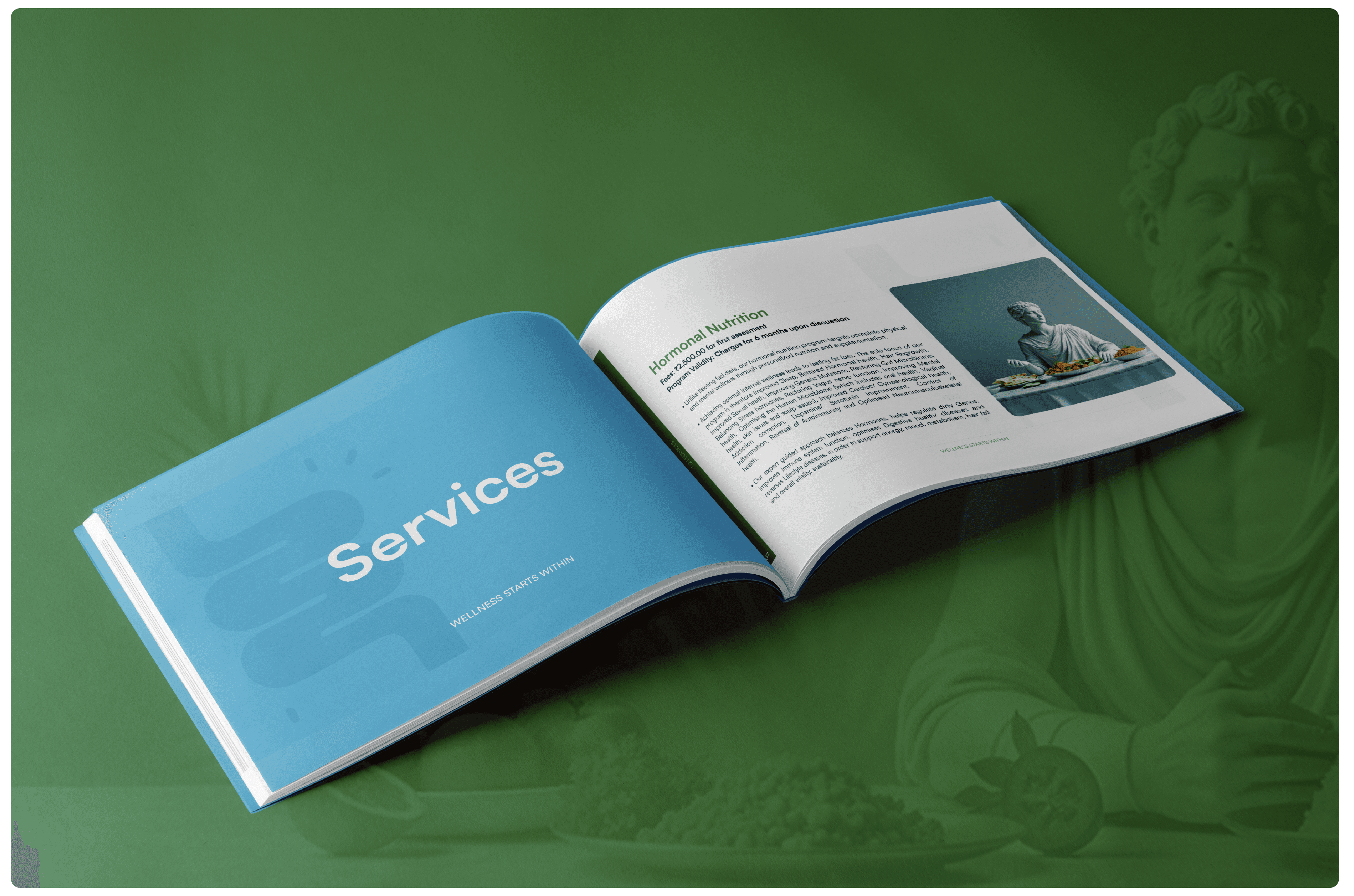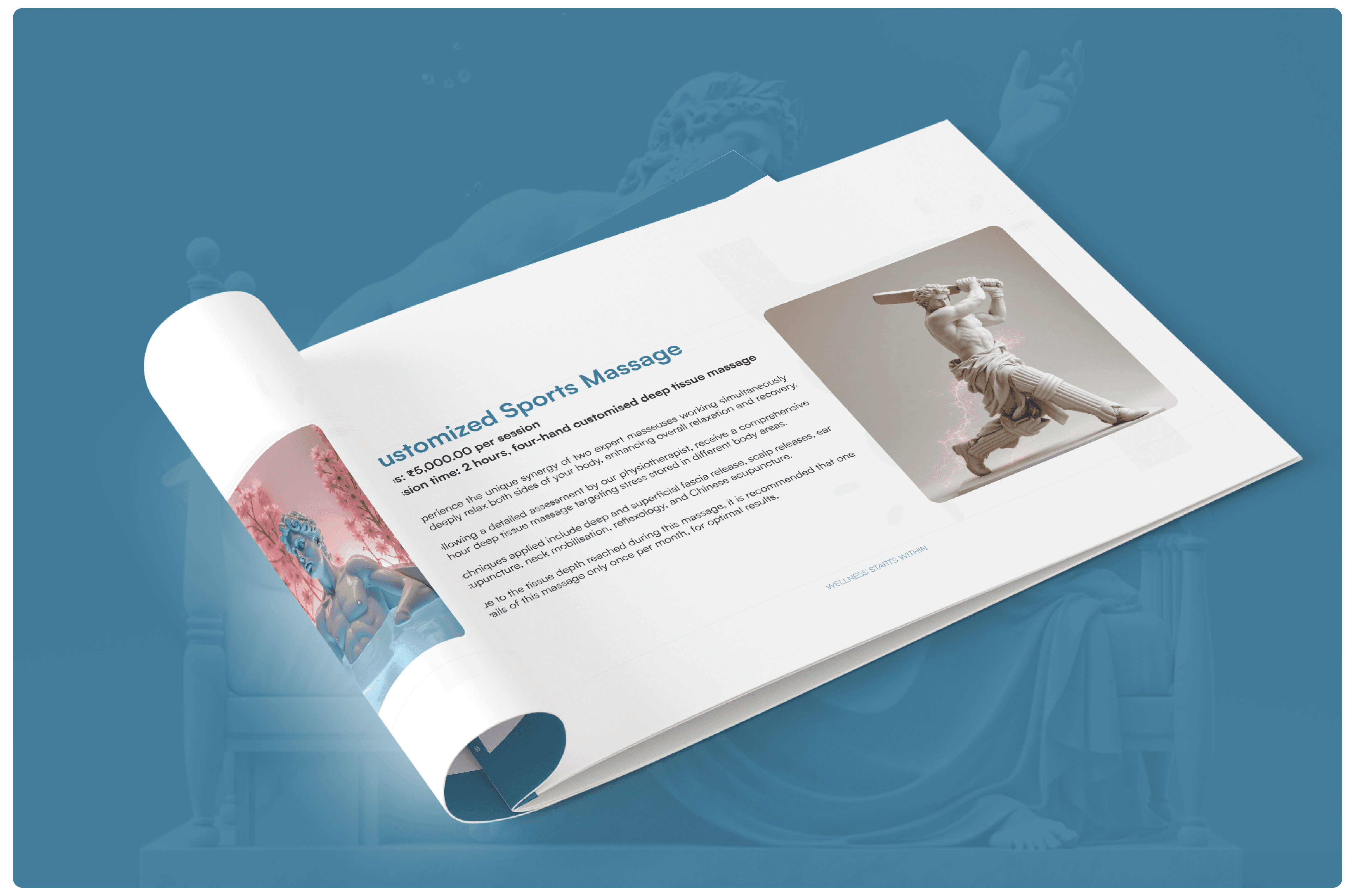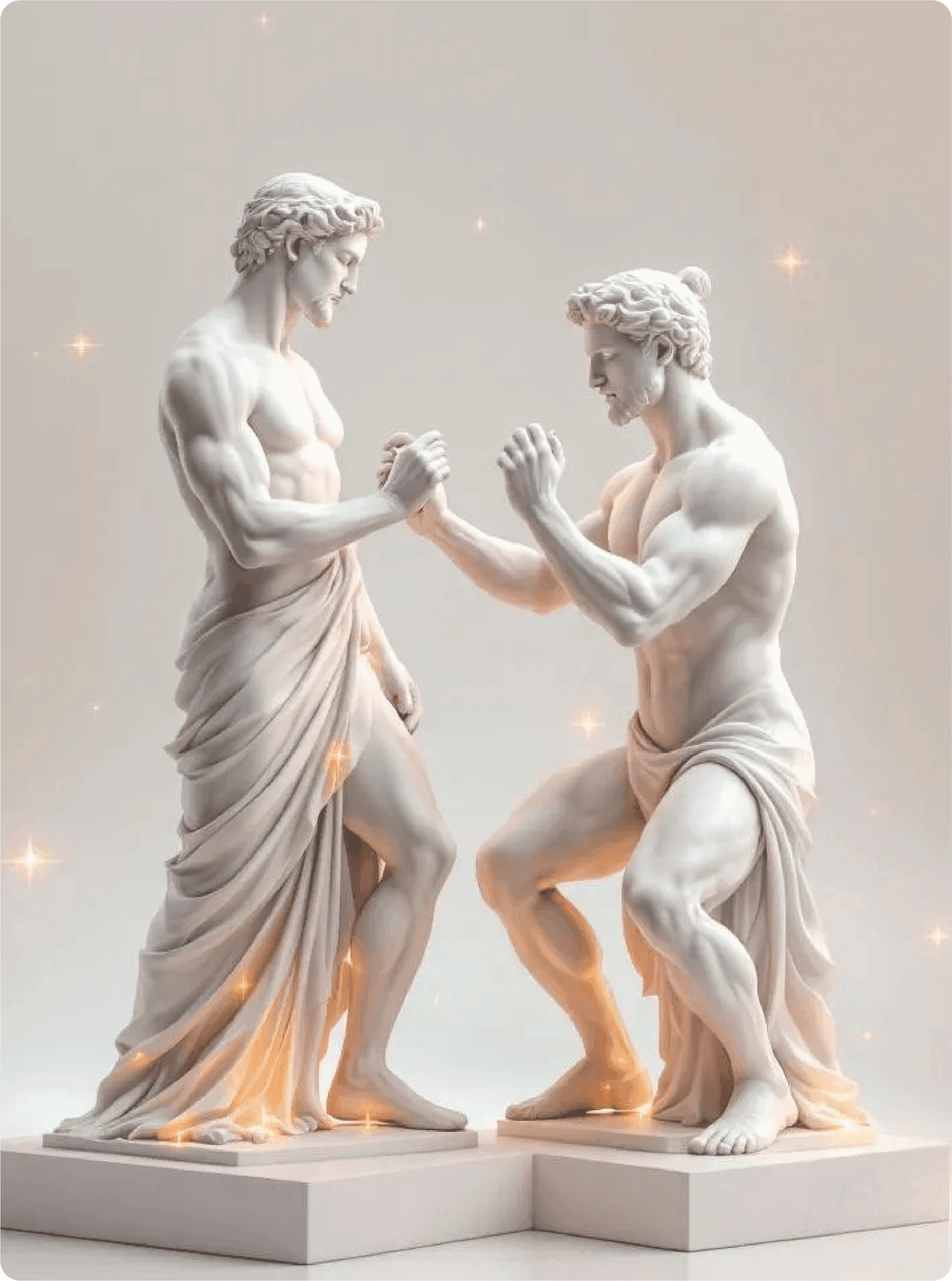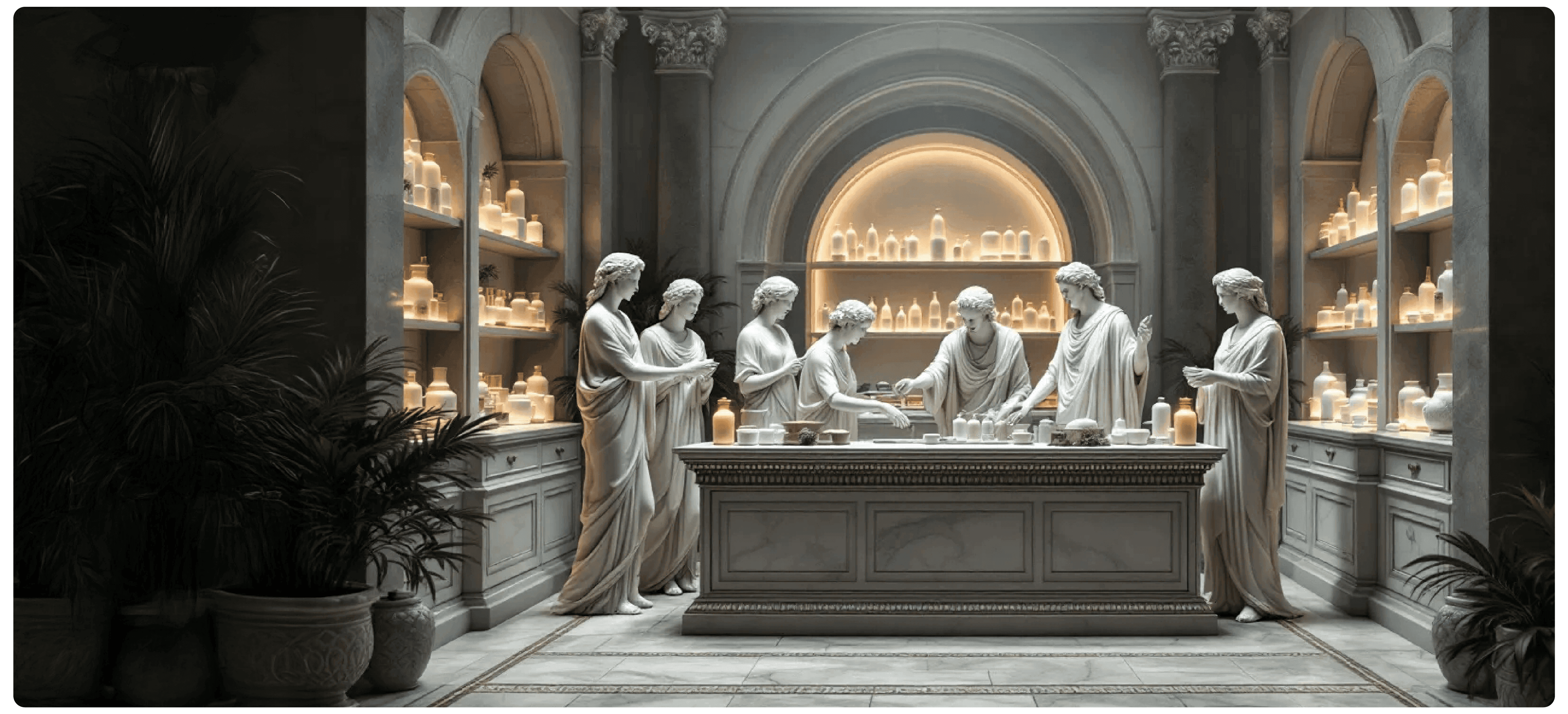 Classical sculptural imagery represents timeless wisdom, balance, and strength—reframed for a contemporary wellness narrative.