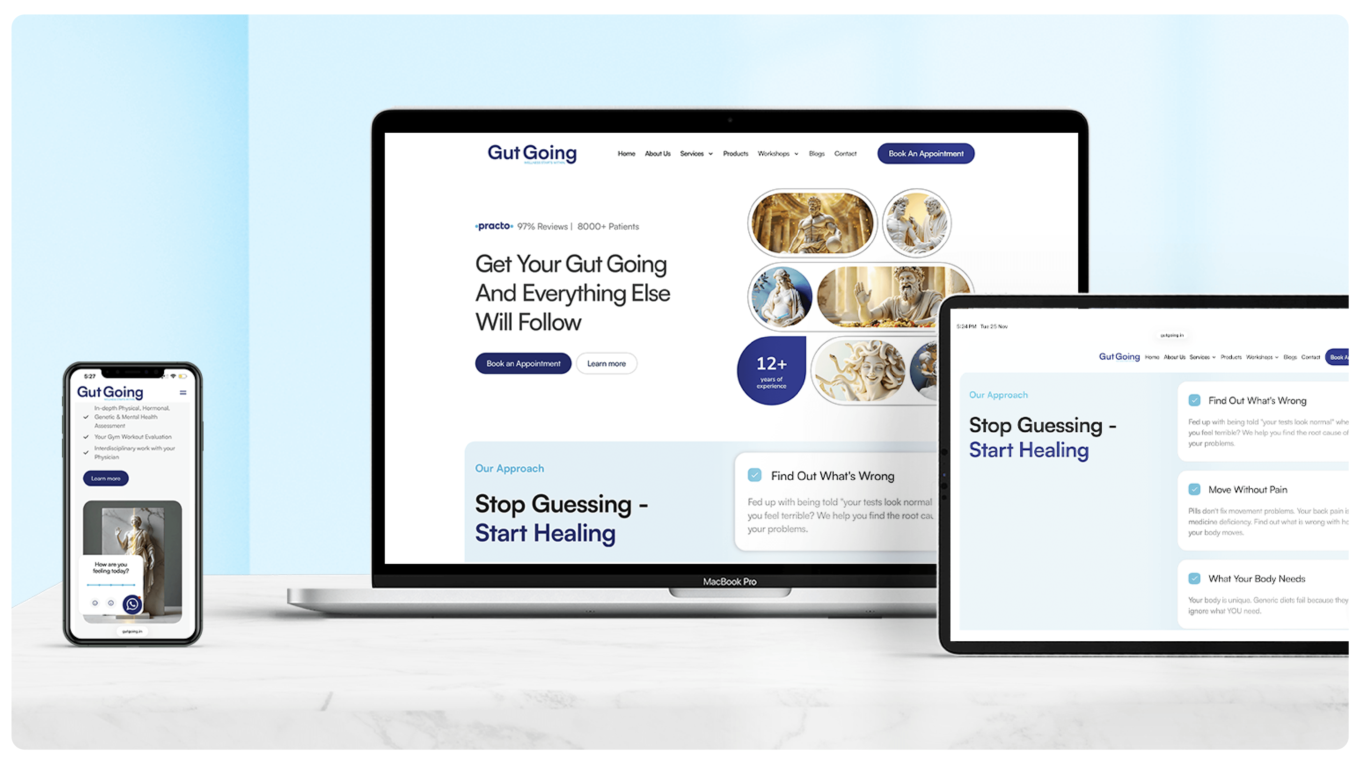 Gut Going needed a brand identity that felt medically credible yet human—avoiding both clinical coldness and generic wellness aesthetics.