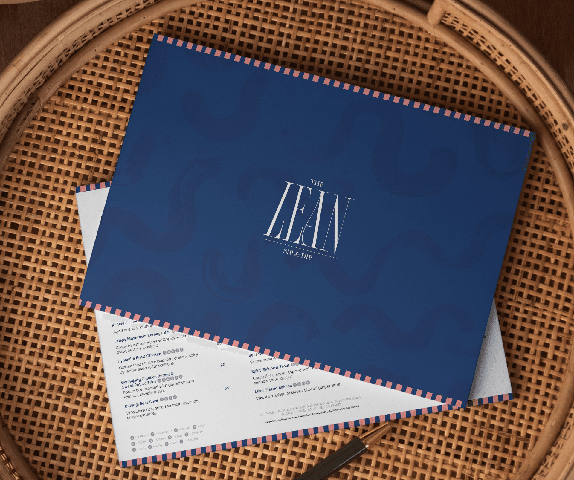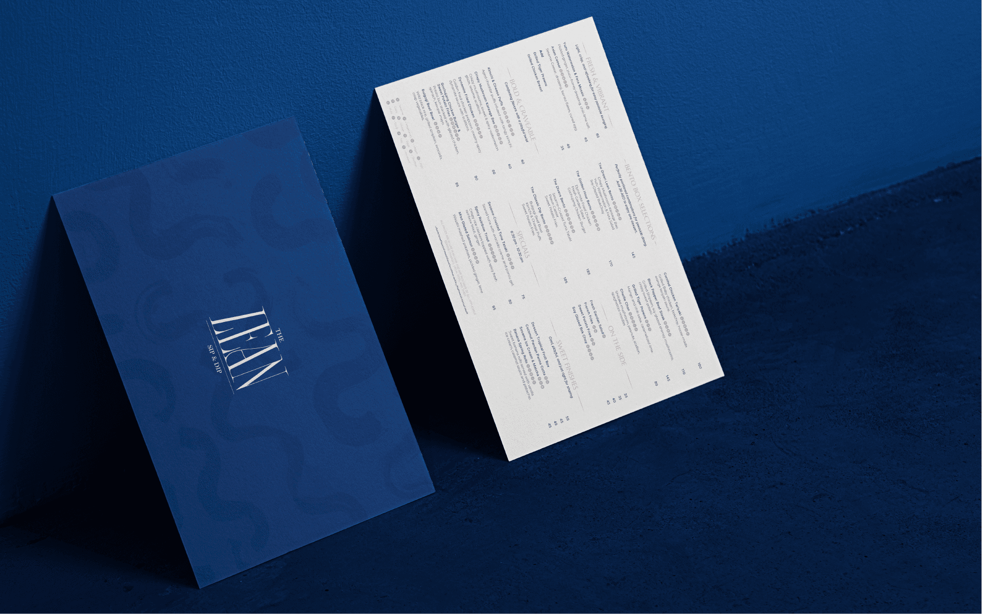 For The Lean poolside launch at Andaz, we designed a menu that feels as curated as the evening itself. Clean layouts, deep aquatic tones, and subtle accents that mirror the mood of the deck — refined, fluid, and effortless.